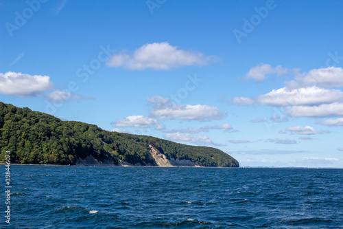 Naklejka premium Ostsee Kreidefelsen auf Rügen vom Meer mit blauem Himmel und Wolken