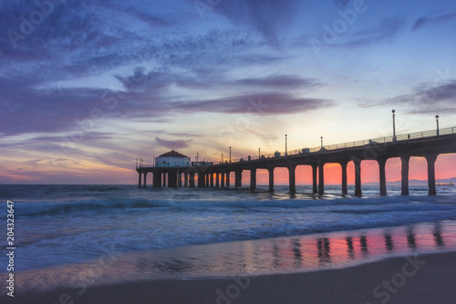 © Andy Konieczny, Fototapeta premium Oszałamiający zachód słońca na molo w Manhattan Beach