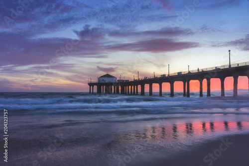 © Andy Konieczny, Fototapeta premium Oszałamiający zachód słońca na molo w Manhattan Beach