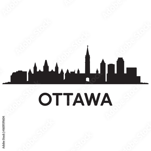 © Nargis, Naklejka premium Ottawa skyline horizontal banner. Ottawa, Canada. Vector template for your design. Vector black silhouette. with white background