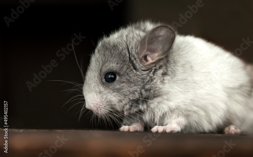 © lulana, Obraz premium Our little white chinchilla with gray head looks ahead