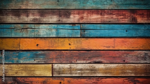 Fototapeta premium Out of date, grungy, colorful wood foundation. AI Generated