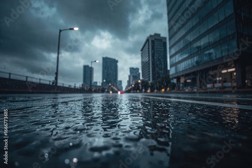 © CreativeBro, Obraz premium Out-of-focus structures seen through raindrop-covered glass on a wet day