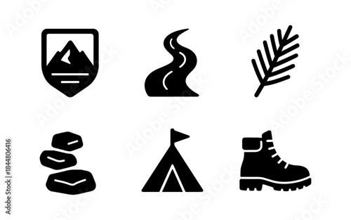 Fototapeta premium Outdoor adventure icons in a simple, clean, and modern style