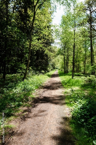 © Wirestock, Fototapeta premium Outdoor dirt path winding through a lush forest of green foliage, creating a scenic view