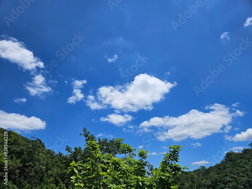 Obraz premium Outdoor enjoying the lush green trees, blue sky and clouds.