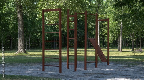 © nani, Fototapeta premium Outdoor fitness park equipment.