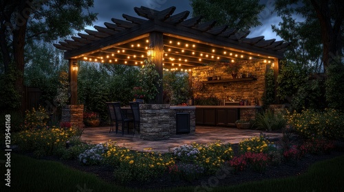Fototapeta premium Outdoor Kitchen Gazebo at Dusk