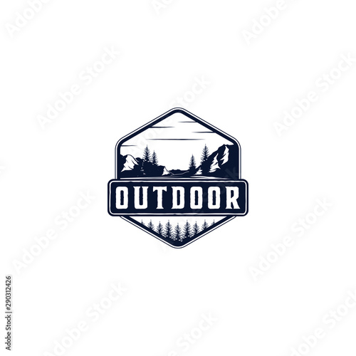 Obraz premium Outdoor mountain nature logo - adventure wildlife pine tree forest design