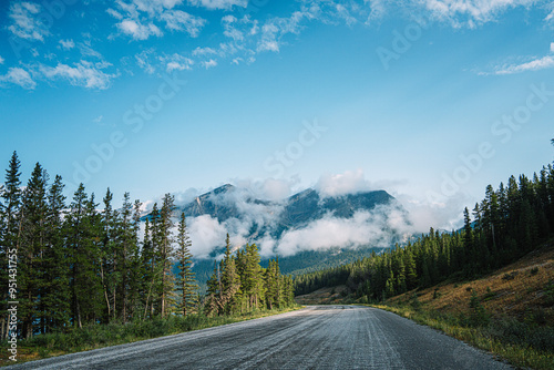 Naklejka premium outdoor nature landscape with mountains and clouds and forest