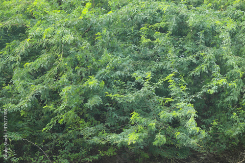 © Rangeecha, Fototapeta premium Outdoor Plants Hedge With Green Fur Leaves For Abstract Or Background Texture