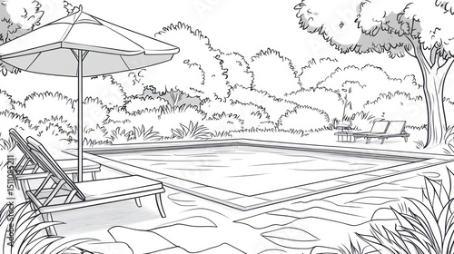 © cha, Obraz premium Outdoor pool scene sketch (1)
