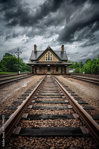 © Fotograf, Obraz premium Outdoor scene of a train station with a cloudy sky