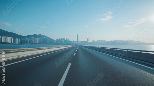 Fototapeta premium Outdoor seaside road scenery, car advertising background picture