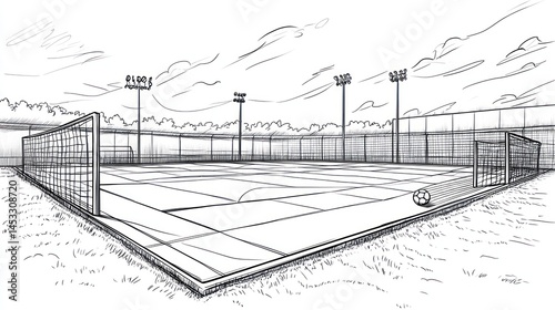 Fototapeta premium Outdoor soccer field sketch, drawing, background, possible use for education,...