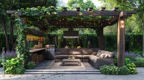 © MAY, Fototapeta premium Outdoor Sofa Outdoor Living Space: A 3D illustration of an outdoor sofa in an outdoor living space