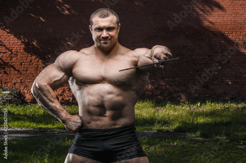 Fototapeta premium outdoor sport Brutal strong muscular men with sword