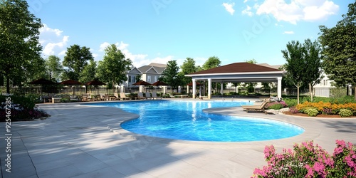 Fototapeta premium Outdoor Swimming Pool With Gazebo And Patio