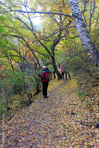 Naklejka premium Outdoor travelers in the forest, Beijing, China