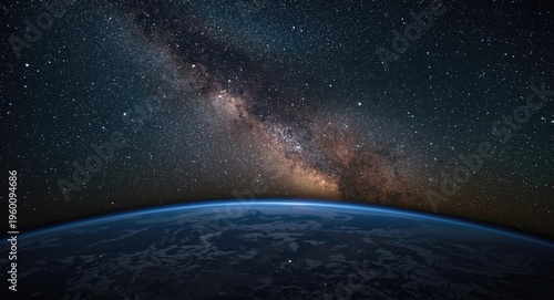 Fototapeta premium Outer space landscape showing Earth beneath a starry Milky Way sky