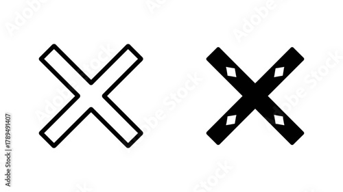 Fototapeta premium Outline and filled x mark vector icons, representing close, delete, error, multiplication, wrong, forbidden, cancel, and cross sign concepts.