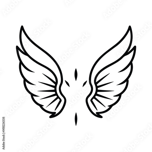 Obraz premium Outline Angel Wings Vector Illustration Decorative Ornament Graphic Design Element Suitable For Logos Prints And Creative Projects On White Background