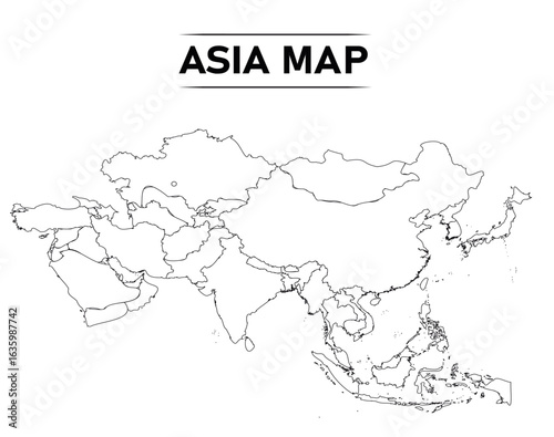 © vector designer, Fototapeta premium outline asia map vector illustration