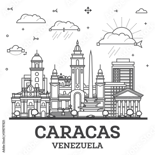 Fototapeta premium Outline Caracas Venezuela City Skyline with Modern and Historic Buildings...