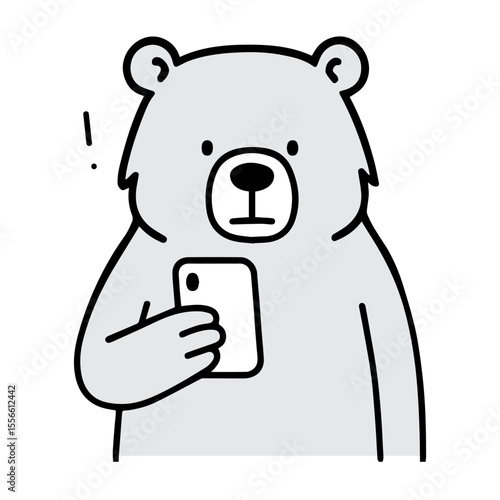 Obraz premium Outline Cartoon Bear Holding Smartphone Icon Illustration