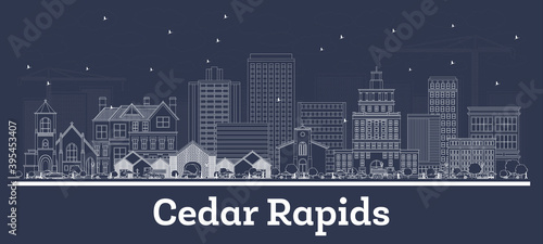 Fototapeta premium Outline Cedar Rapids Iowa Skyline with White Buildings.