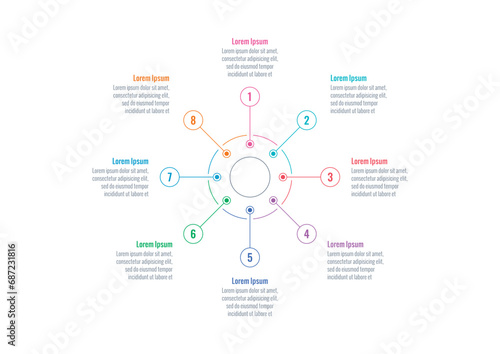 © yasin, Naklejka premium outline circular infographic template. eight step informational template. web, internet, magazine, business, annual report infographic template