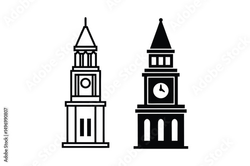 © Ferozabegum, Naklejka premium Outline Clock Tower Vector Drawing