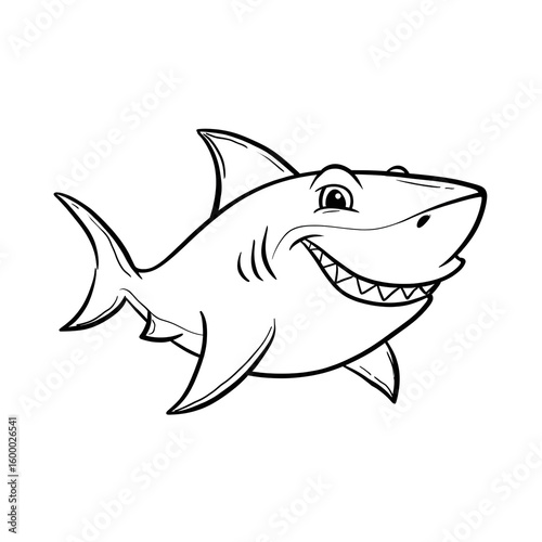 Fototapeta premium Outline Comic Style Smiling Shark Character Marine Animal Illustration. Ai Generated Images