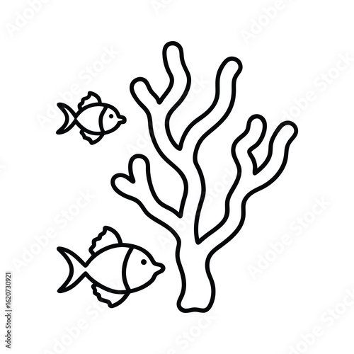 © Monish, Obraz premium outline coral reef with fish cartoon
