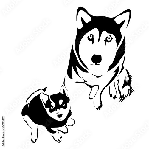 © obereg, Naklejka premium Outline dog and puppy husky top view vector template. Can be use