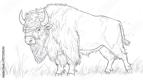 Fototapeta premium Outline drawing of a bison in tall grass. Possible use Coloring book...