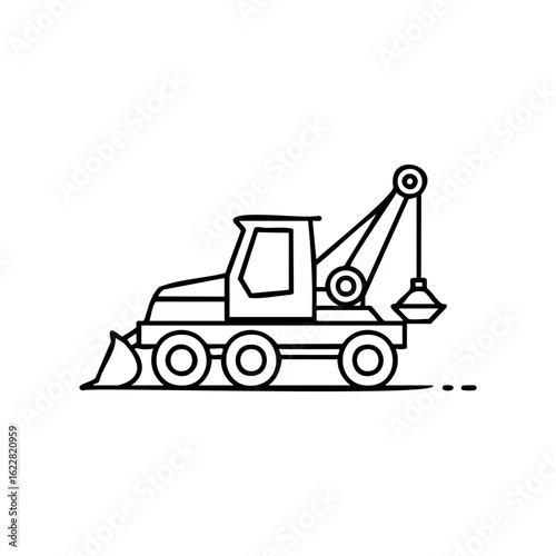 Naklejka premium Outline drawing of a heavy construction vehicle with crane and plow...