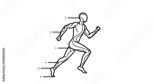 © SULTAN, Fototapeta premium Outline drawing of a running figure with speed lines indicating motion on a white background simple design