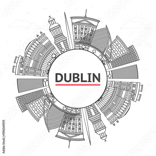 Fototapeta premium Outline Dublin Ireland City Skyline with Historic Buildings and copy space...