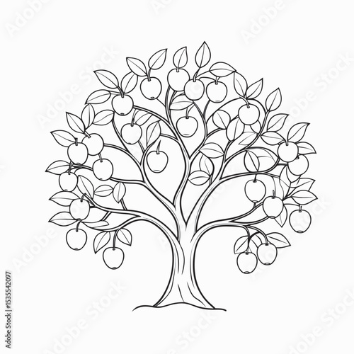 © MDTamim, Obraz premium Outline Fruit Tree Vector – Minimalist Hand Drawn Apple Tree for Nature, Garden, and Organic Themes