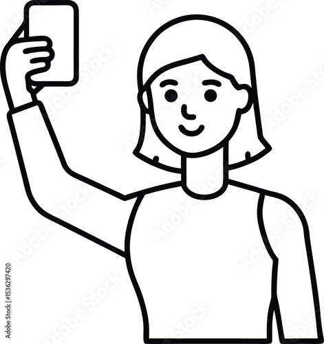 © Wesly, Obraz premium Outline Icon of Person Taking Selfie.