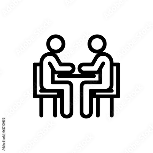 Fototapeta premium Outline icon of two business professionals seated at table in a meeting setting, concept for corporate discussion, project collaboration and teamwork planning.