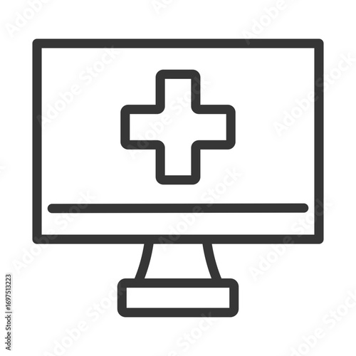 © berkah icon, Obraz premium outline icon single electronic healthcare with computer design and plus sign
