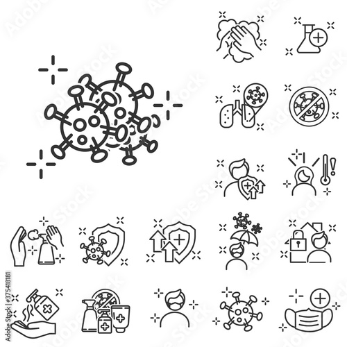 Fototapeta premium Outline icons about Coronavirus prevention and symptoms. Virology outline....