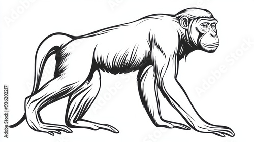 © sanntoru, Obraz premium Outline illustration of a black and white monkey for drawing and coloring on white background