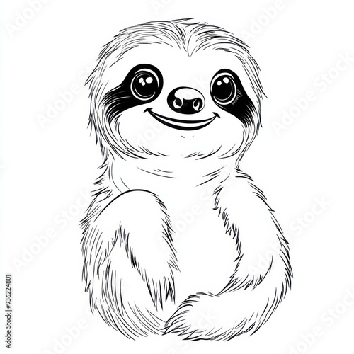 © sanntoru, Fototapeta premium Outline illustration of a black and white sloth for drawing and coloring on white background
