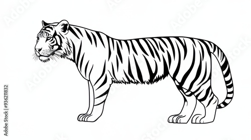 © sanntoru, Naklejka premium Outline illustration of a black and white tiger for drawing and coloring on white background