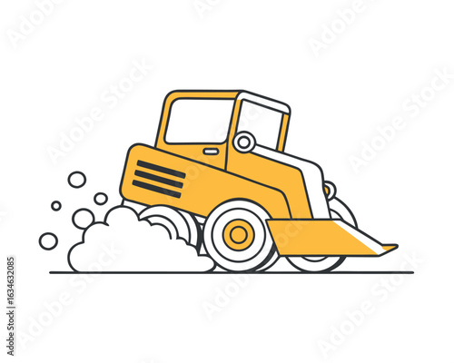 © amena , Fototapeta premium Outline illustration of a bulldozer pushing dirt on flat ground suitable for construction or heavy machinery themes