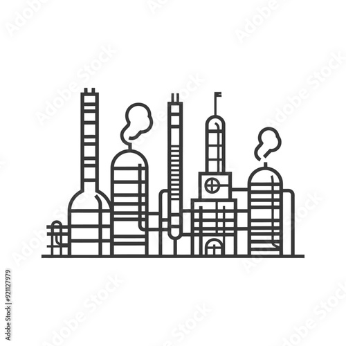 © NikahGeh, Obraz premium Outline Illustration of a Chemical Processing Plant with Smoke Stacks