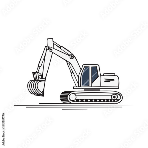 © FryArt, Naklejka premium Outline illustration of a construction excavator, tracked vehicle digger isolated